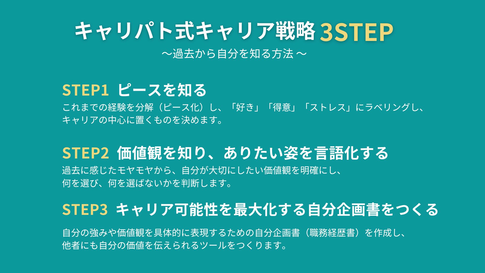 - STEP3:キャリアの方向性を言語化し、「自分企画書」を作る技術